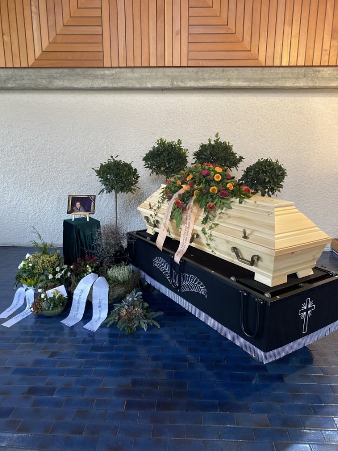 Trauerfeier mit Sarg, Friedhof Schafhausen