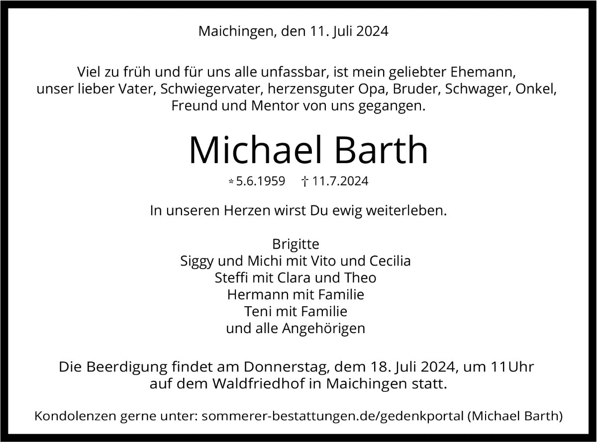 Es tut mir sooo leid, dass Michael Barth so früh von uns gehen musste.